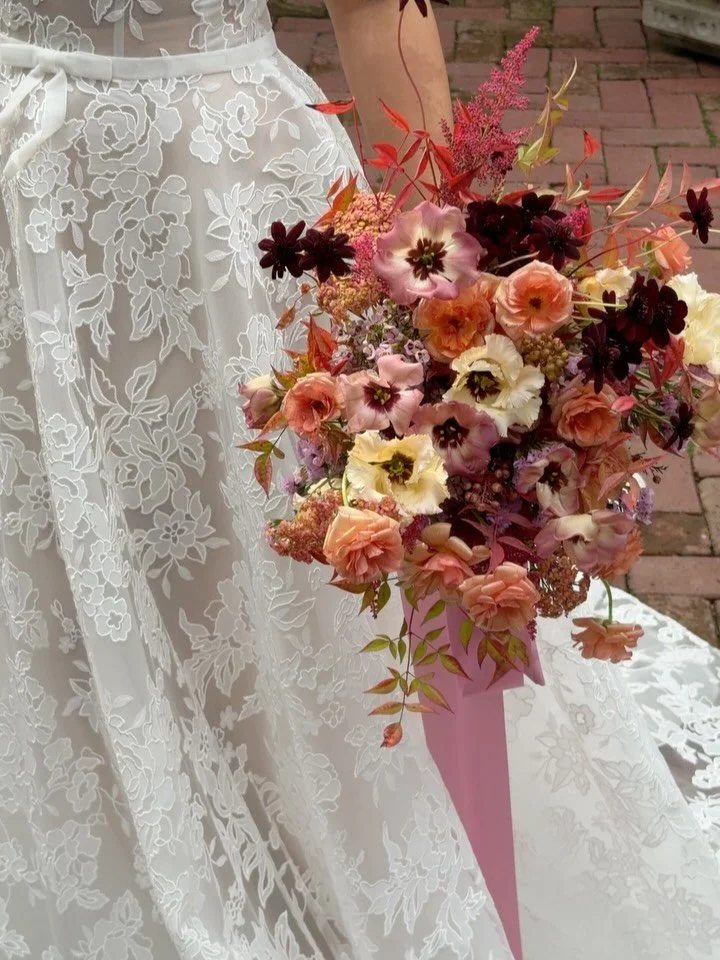 Clients have described her aesthetic as organic, airy, romantic and whimsical. Her design work is inspired by the way flora naturally occurs and thrives in the wild. She loves how various elements of nature work hand in hand—from the honey bees connecting flower to flower—to the foliage and vines reaching longingly toward the sun—all parts coming together to create beautifully structured chaos.